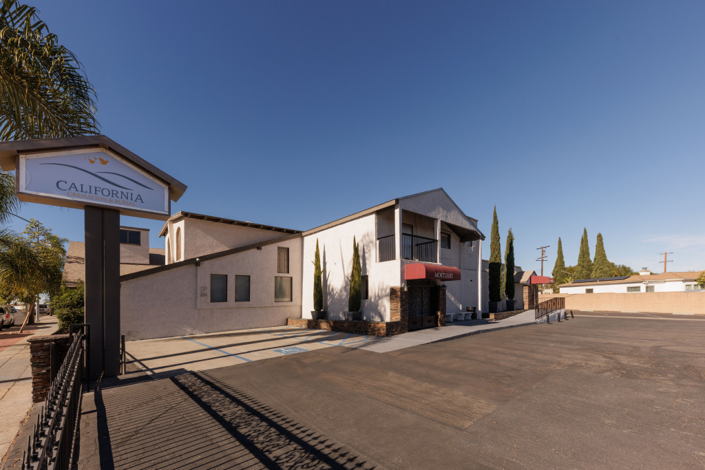 California Cremation & Burial, San Diego is located on the corner of 59th Street and El Cajon Boulevard, three blocks west of College Avenue. This location operates in a 12,000 square foot, two story stucco building with burgundy awnings and has been in operation at this location for 28 years.