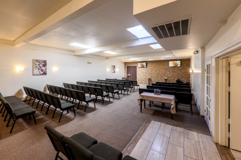 Funeral services and memorials are held here, with chapel seating for 150 guests. There is also a reception hall, a family room as well as a large quiet area for private goodbyes.